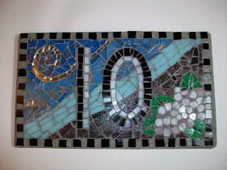 We were sitting on my friend Eileen's patio one day and I said "Oh, you need a mosaic on that wall", as you can see, she really did!